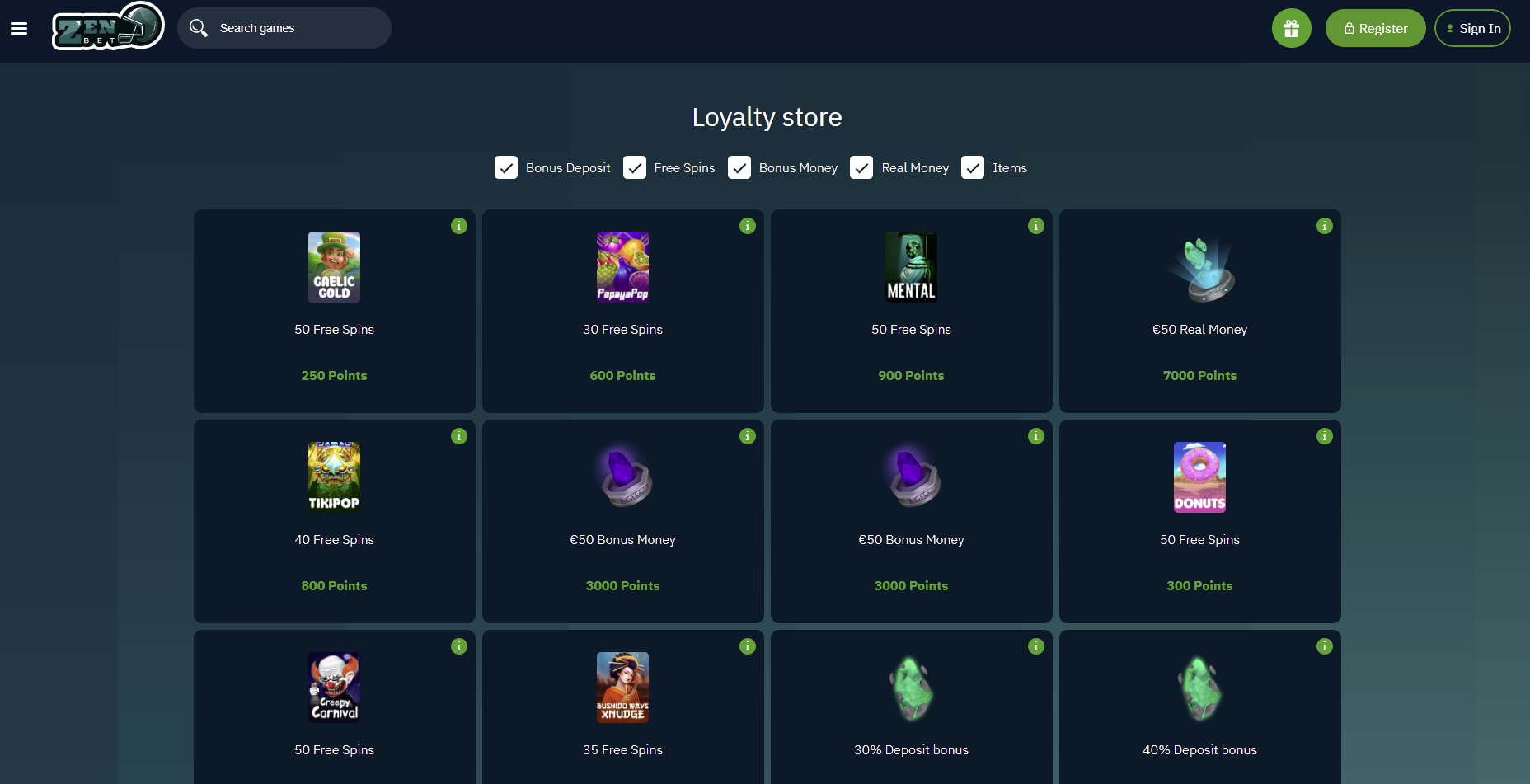 Zen Betting Casino wurde 2017 im Besitz von RR Investment N.V., einem in Curacao lizenzierten iGaming-Betreiber, gegründet. Es ist ein sehr einzigartig aussehendes Online-Casino mit einer großen Auswahl an Casinospielen, vielen verlockenden Boni und einem Zahlungssystem, das eine Vielzahl verschiedener Methoden akzeptiert, einschließlich Kryptowährungen und Fiat-Währungen.