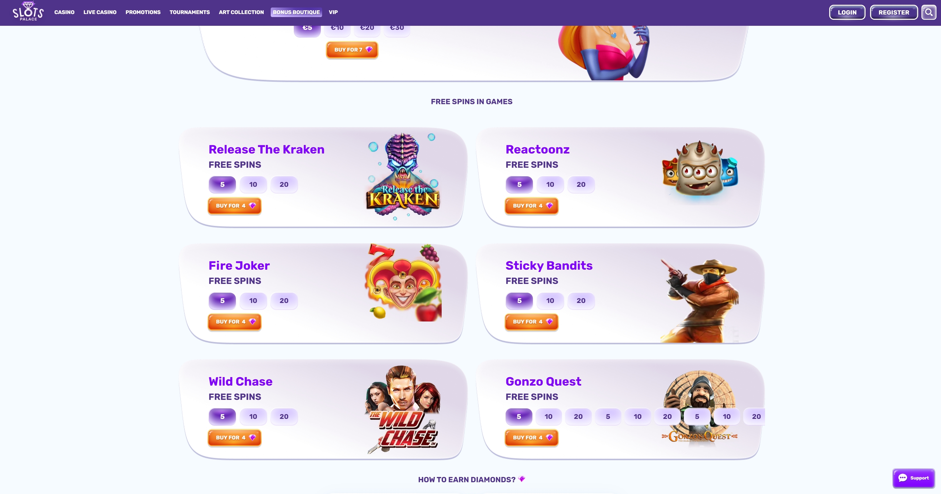 Vuonna 2020 lanseeratussa SlotsPalacessa pelaajat voivat nauttia laajasta valikoimasta tuotteita, mukaan lukien kasinopokeri ja livekasino. Kasinolla on tällä hetkellä 39 pelistudiota, joissa on yhteensä yli 2578 erilaista peliä. Pelien tarkka määrä vaihtelee kuitenkin paikasta toiseen. SlotsPalace on Curaçao eGamingin lisensoima. Englannin lisäksi kasinon verkkosivuilla on 7 muuta kielivaihtoehtoa, mukaan lukien saksa ja suomi. SlotsPalacen peliaula tarjoaa erilaisia pelejä miellyttääkseen kaikentasoisia asiakkaita. Suositut ohjelmistostudiot, kuten Play'n GO, Elk Studios tai Habanero, ovat käytettävissäsi sekä muiden erinomaisten nimien suunnittelemat parhaat kolikkopelit. Asiakkailla on mahdollisuus kokeilla 3D-kolikkopelejä, videokolikkopelejä sekä klassisia kolikkopelejä. SlotsPalacen suosituimpiin kolikkopeleihin kuuluvat Fire Lightning (BGaming), Gamomatin kehittämä Take 5 ja Endorphinan kehittämä Fairy Tale. Lisäksi tarjolla on progressiivisia jättipottipelejä, mm. B. Vegas Night Life, jonka on kehittänyt NetEnt.